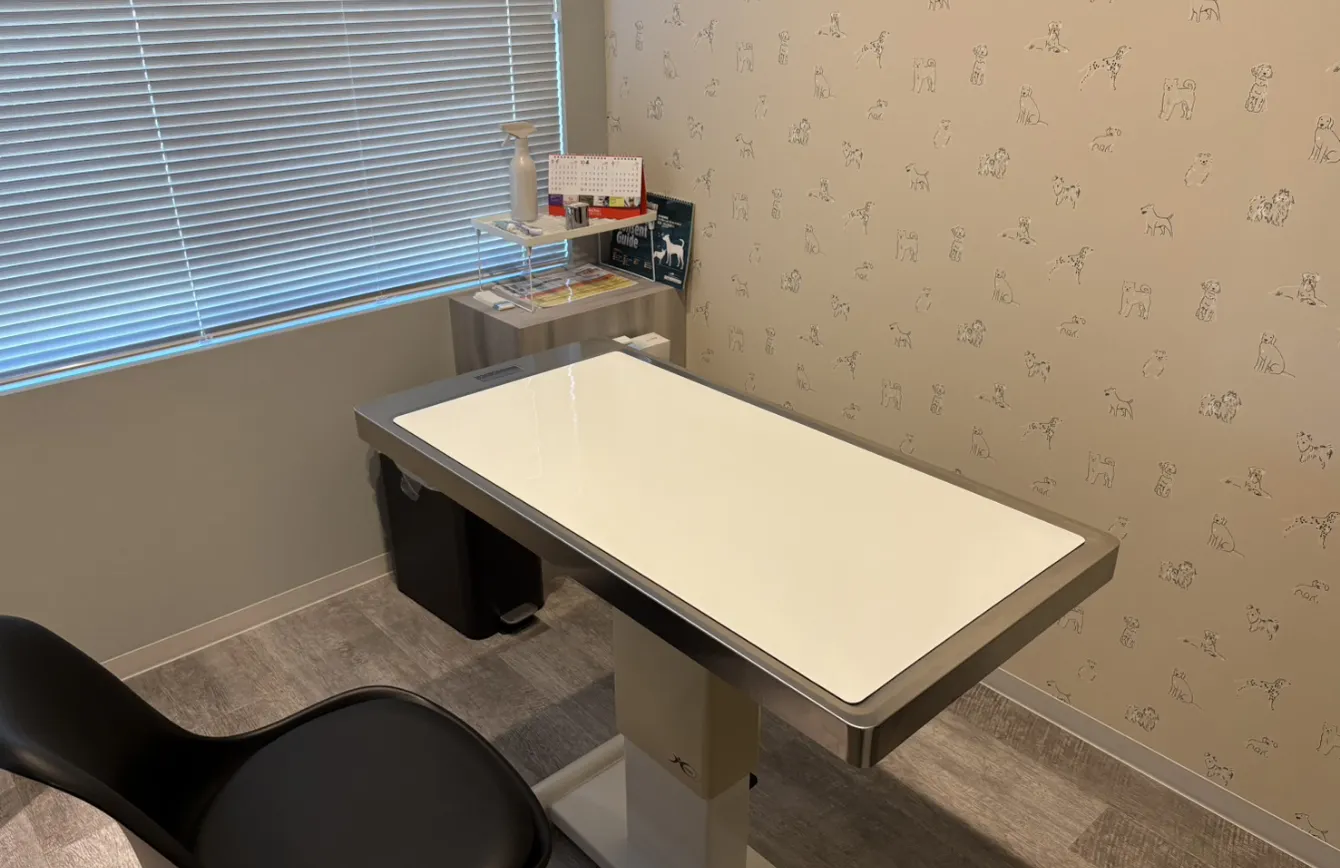 動物たちが落ち着いて診察を受けられるよう、明るく清潔な空間です。