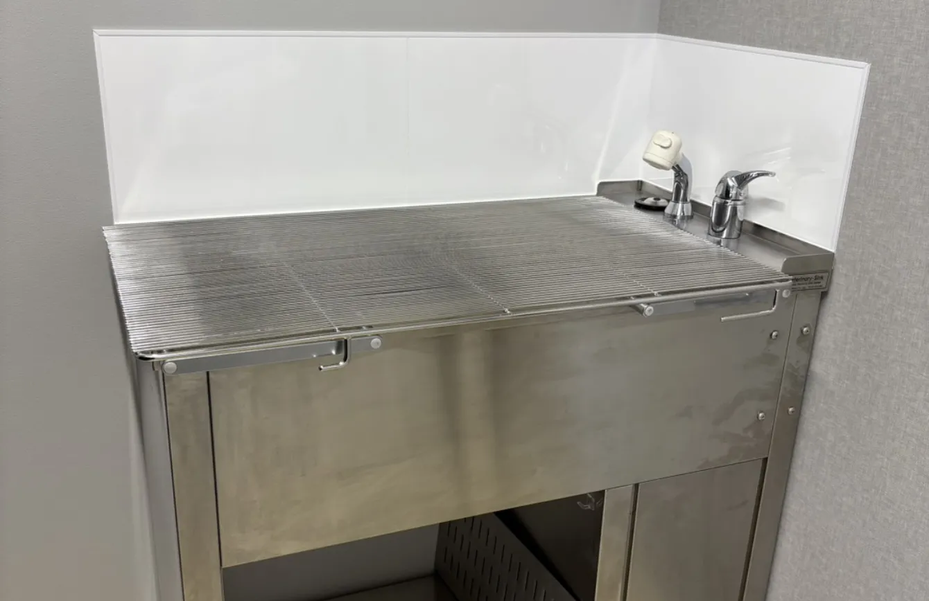 ドッグバスを完備したグルーミングルームでは、皮膚の状態に合わせたシャンプーで、動物たちがリラックスして過ごせるよう、丁寧なケアを心がけています。